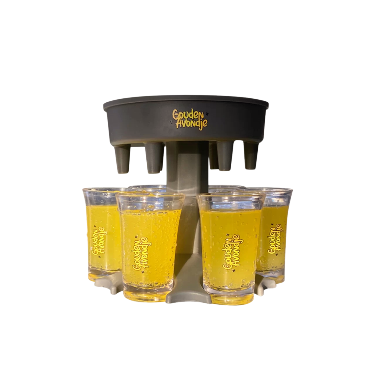 Maak elk feestje legendarisch met de Gouden-Avondje Shotdispenser! Vul in één keer 6 shotglaasjes zonder geknoei – ideaal voor thuis, op de sportvereniging, of een studentenfeestje. Met dit handige accessoire steel jij de show en schenk je iedereen moeiteloos een ronde in! 🎉